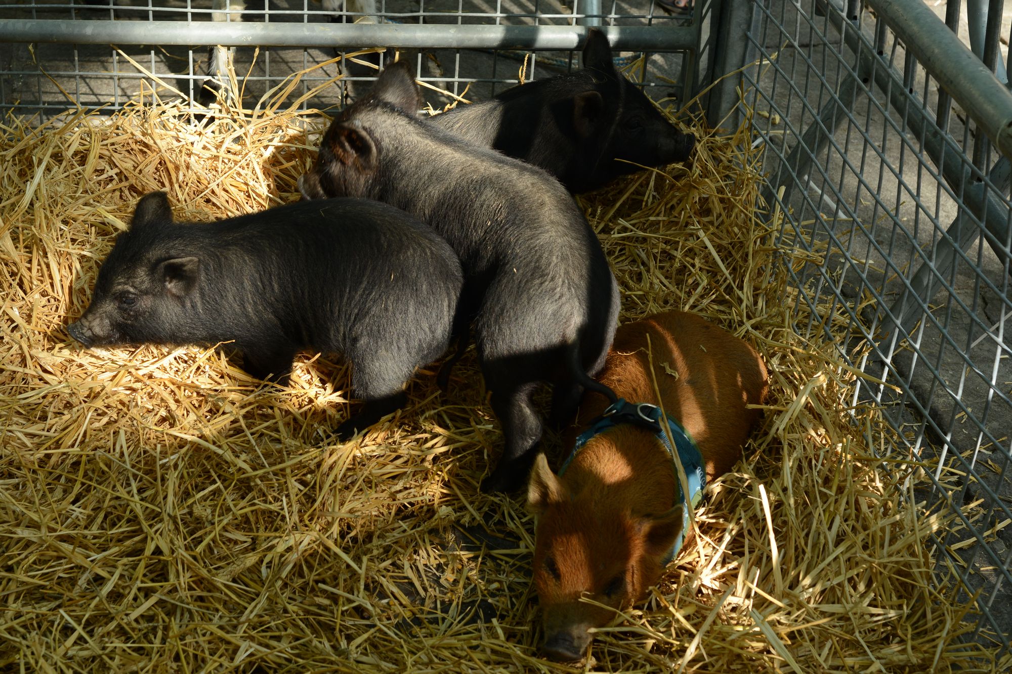Auch heute gibt es einen ganz kleinen Markt mit wenigen Bioständen. Die Attraktion sind allerdings vier kleine Schweinchen, ein Schaf, eine Ziege und vor allem ein schwarzer Schwan mit fünf flauschigen Küken, die man in den Brunnen gesetzt hat.