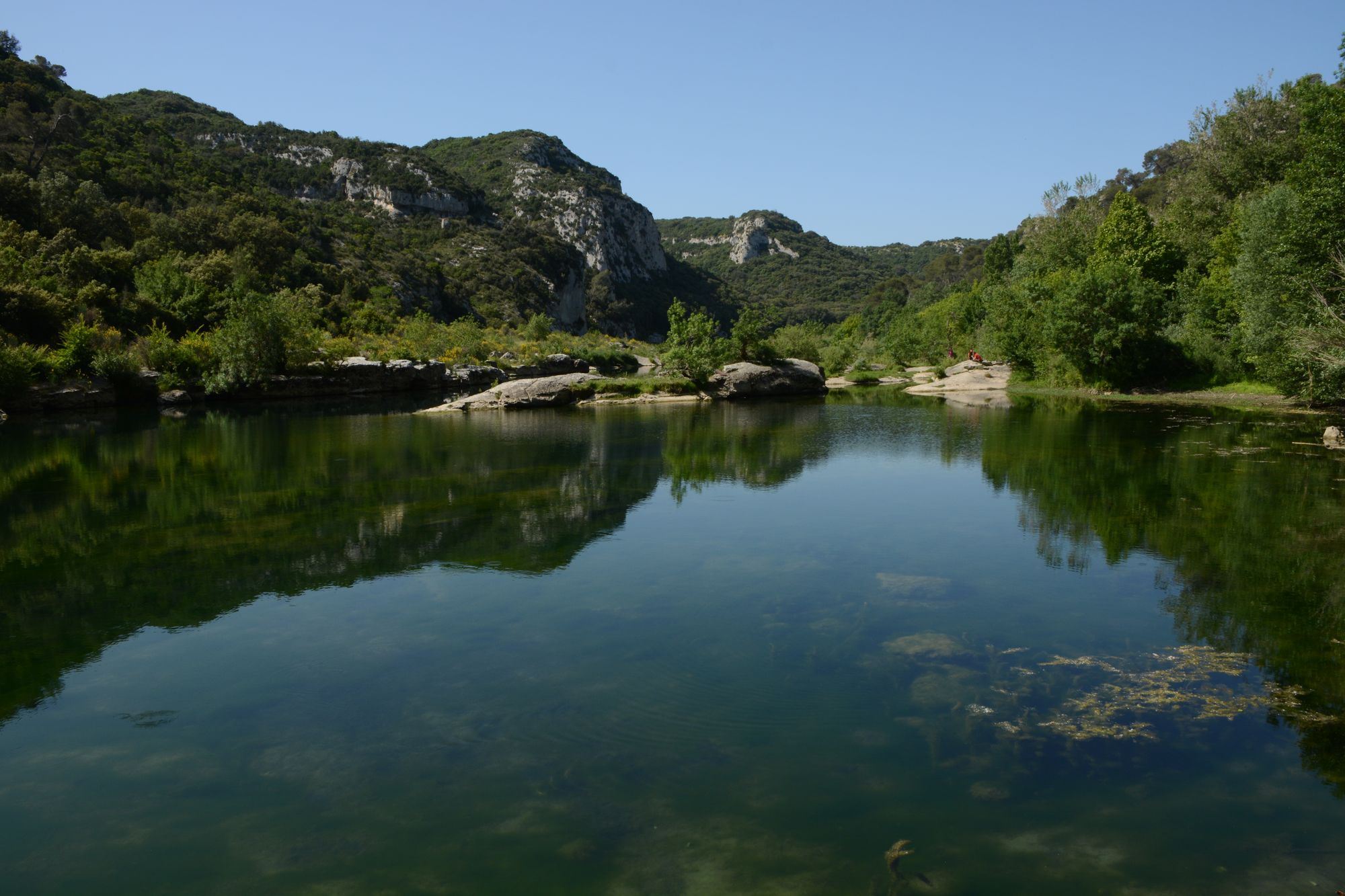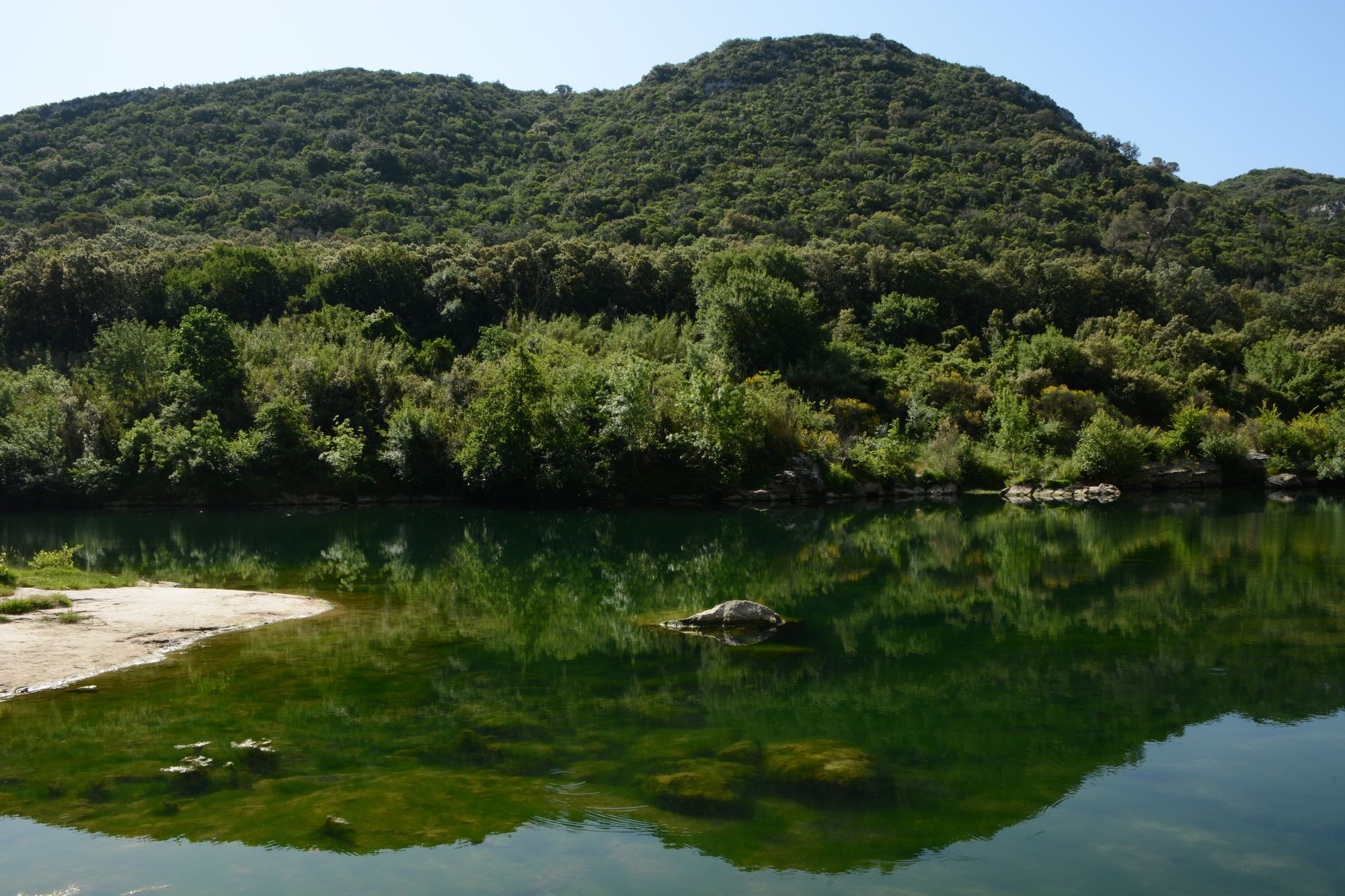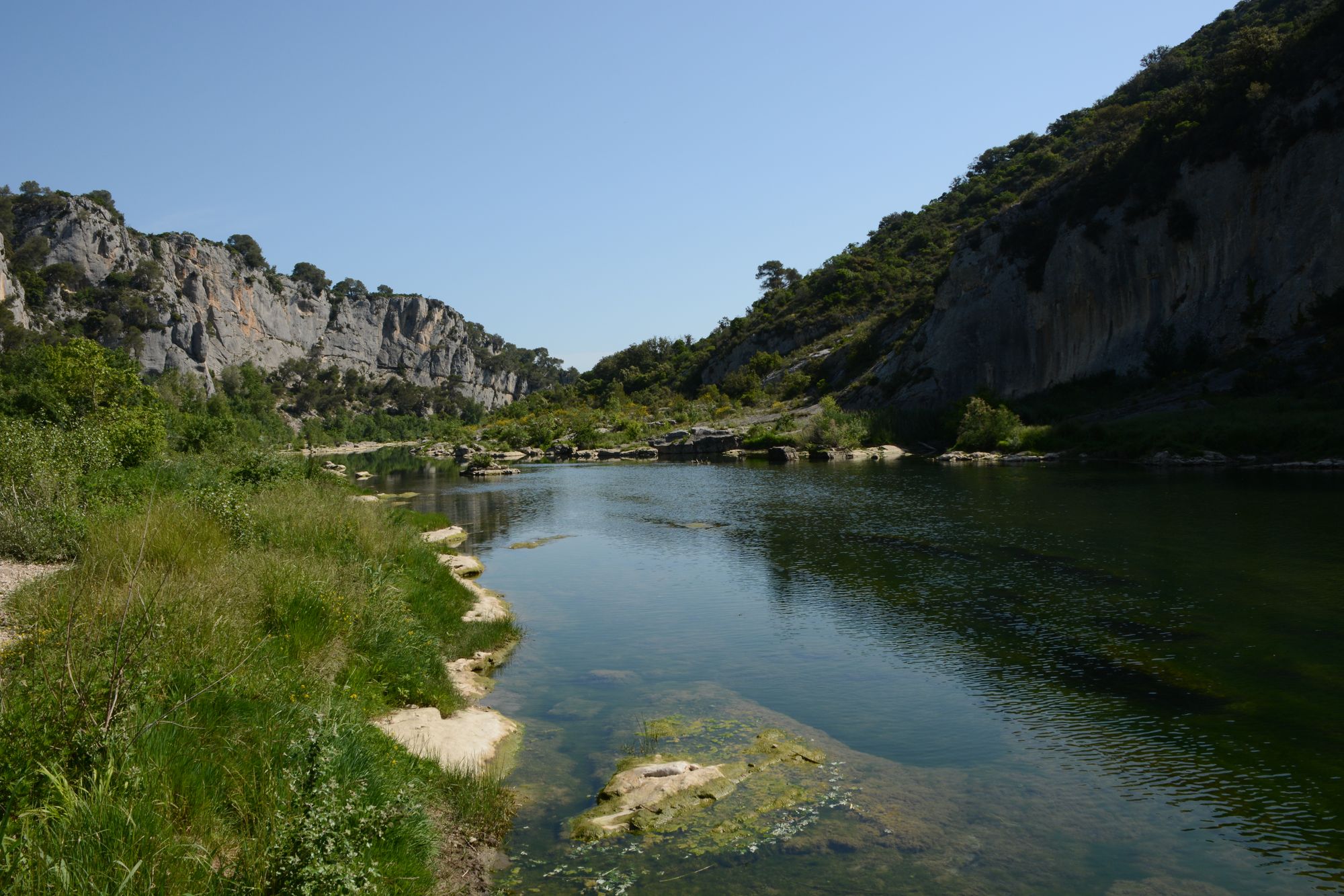Collias soll sehr schön sein. Das liegt im Süd-Osten und ist nicht so weit entfernt. Wir laufen ein wenig am Fluss entlang. Wanderung wird es keine, aber ein schöner Spaziergang. Begleitet werden wir von sehr lautem Froschgequake - ein erstklassiges Konzert.