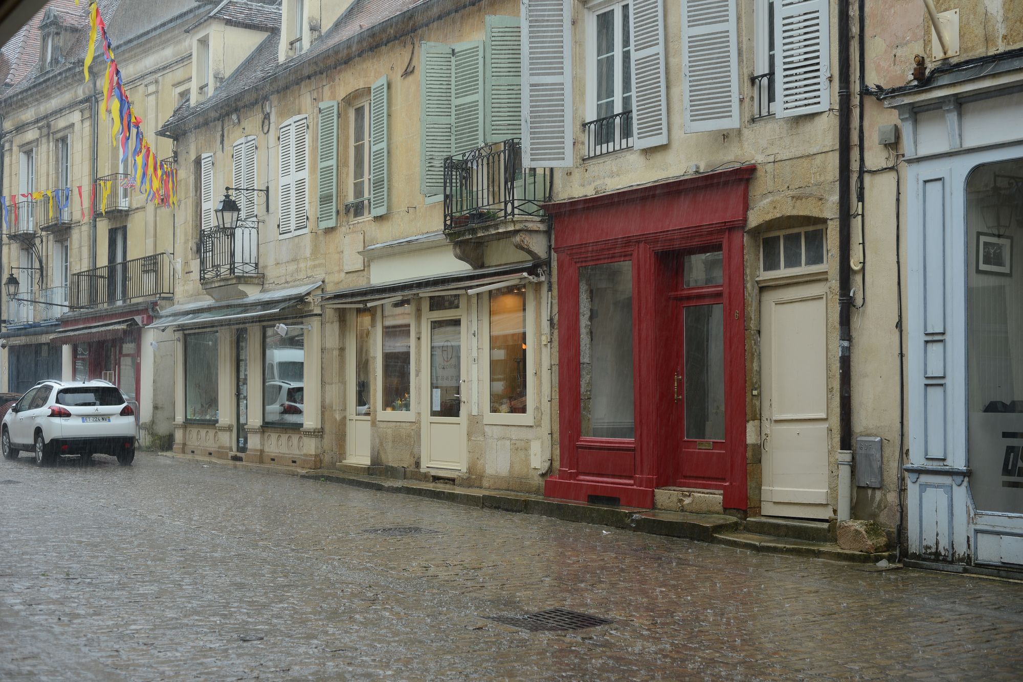Am Nachmittag wollen wir dann nochmal nach Semur hinein. Es hatte kurz vorher schon einen heftigeren Regenguss gegeben und als wir am Auto loslaufen sieht der Himmel ziemlich dunkel aus. Es dauert keine 5 Minuten und wir müßen uns unterstellen, weil es sehr heftig schüttet. So macht das natürlich keinen Spaß, also zurück zum Auto (sobald es etwas weniger regnet) und ab ins Hotel um auf besseres Wetter zu warten.