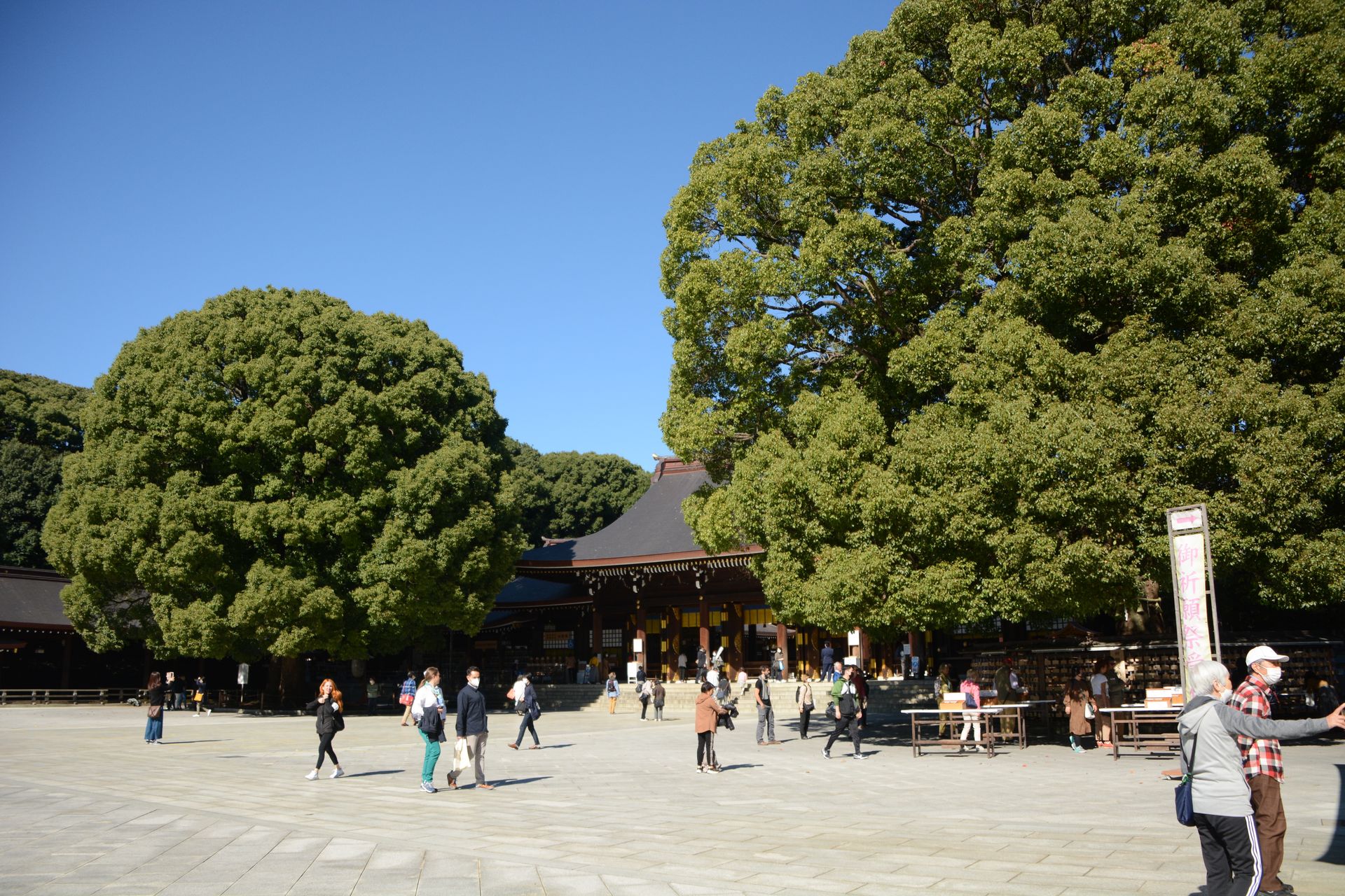 Meiji-Shintoshrein an, der in einem sehr schönen Park liegt. Die U-Bahn ist ganz schön voll - meinen wir - Keishi zeigt uns Videos von Schuppsern. Leuten die zur Rushhour Fahrgäste in die Waggons quetschen. Unglaublich!
