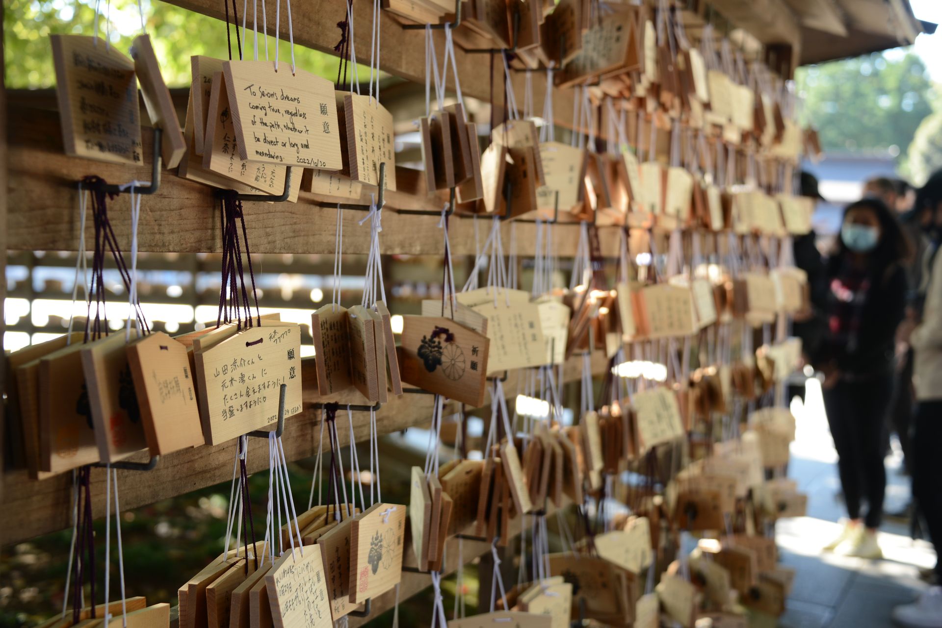 Man schreibt Wünsche oder Bitten auf kleine Holztafeln
