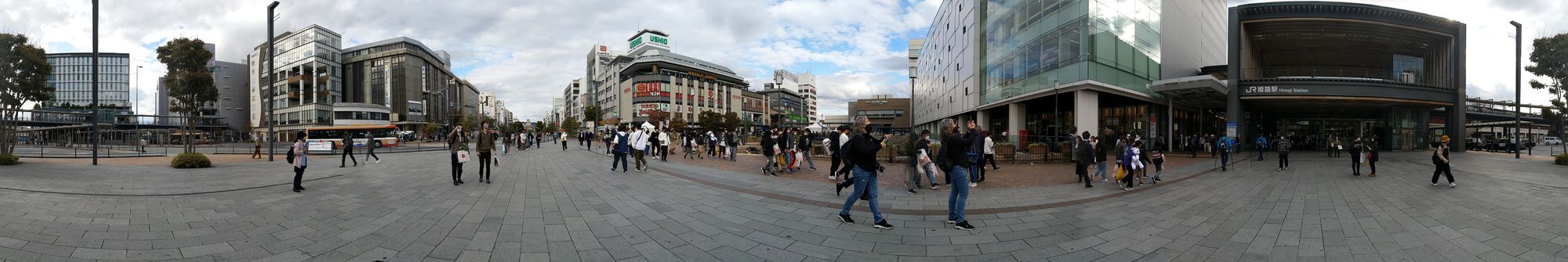 Himeji. Das muss ich mühsam nacharbeiten. Am Bahnhof in Himeji können wir dankenswerterweise unser Handgepäck in Schließfächer schließen. Dann steigen wir in einen Vintage-Bus und fahren zur