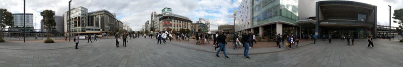 Auf dem Weg zum Bahnhof versuchen wir einen Café zu ergattern. In einem Café, in dem viel hippes Jungvolk sitzt, denken wir richtig zu sein. Die Japaner mögen Café offensichtlich sehr. Sitzplatz bekommen wir leider nicht, also gibt's halt togo. Alle Youngsters hinter dem Tresen verstehen uns nicht, obwohl Eine ein Shirt mit der Aufschrift "Espresso to go" an hat - den hätte ich gerne bestellt. Eine andere Bedienung wird eiligst gerufen und die versteht uns. Im Gespräch erzählt sie uns, dass ihr Freund in Frankfurt wohnt. So wenig Sprachkenntnisse hätten wir wirklich nicht erwartet, zumal Keishi uns erzählt hat, dass hier in der