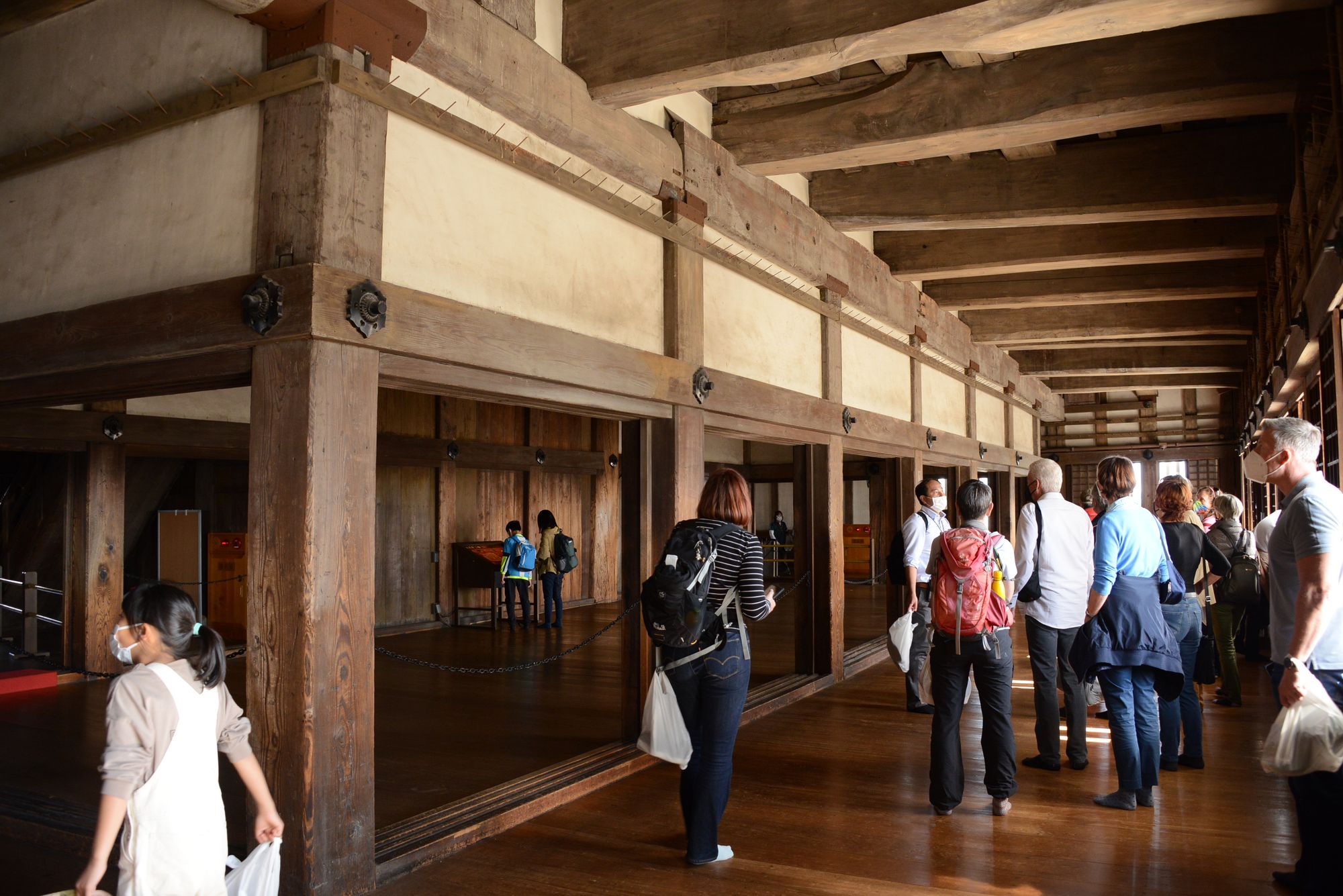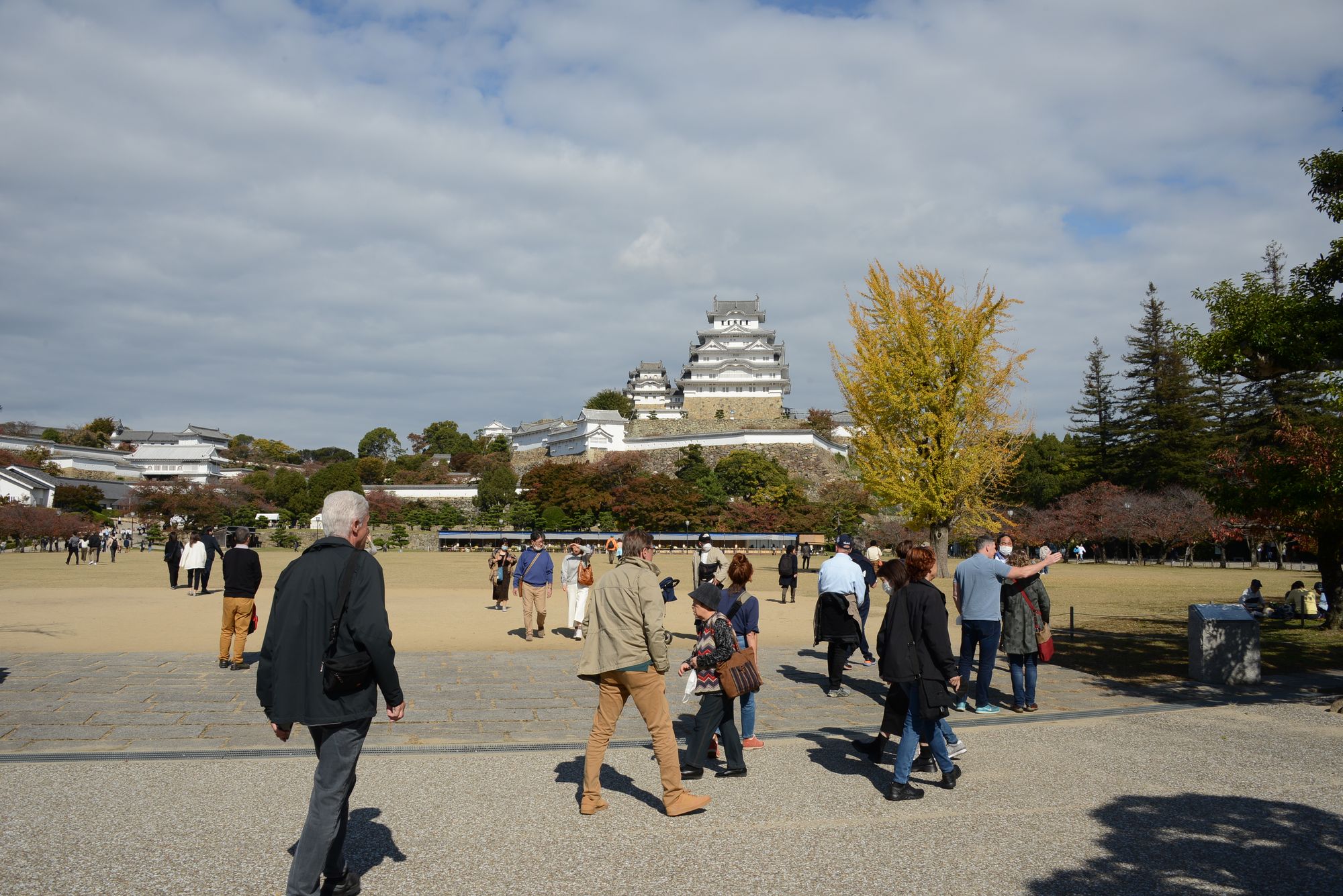 Das Wetter ist wieder schön sonnig. Es hat blauen Himmel und ein paar lockere Wolken. Perfekt zum fotografieren. Auf dem riesigen Vorplatz zur Burg erzählt uns Keishi natürlich von der Geschichte. Unter anderem wurden hier mehrere Szenen verschiedener Filme gedreht. Irgendwas von Starwars (sorry da hab ich keinen Zugang zu) und