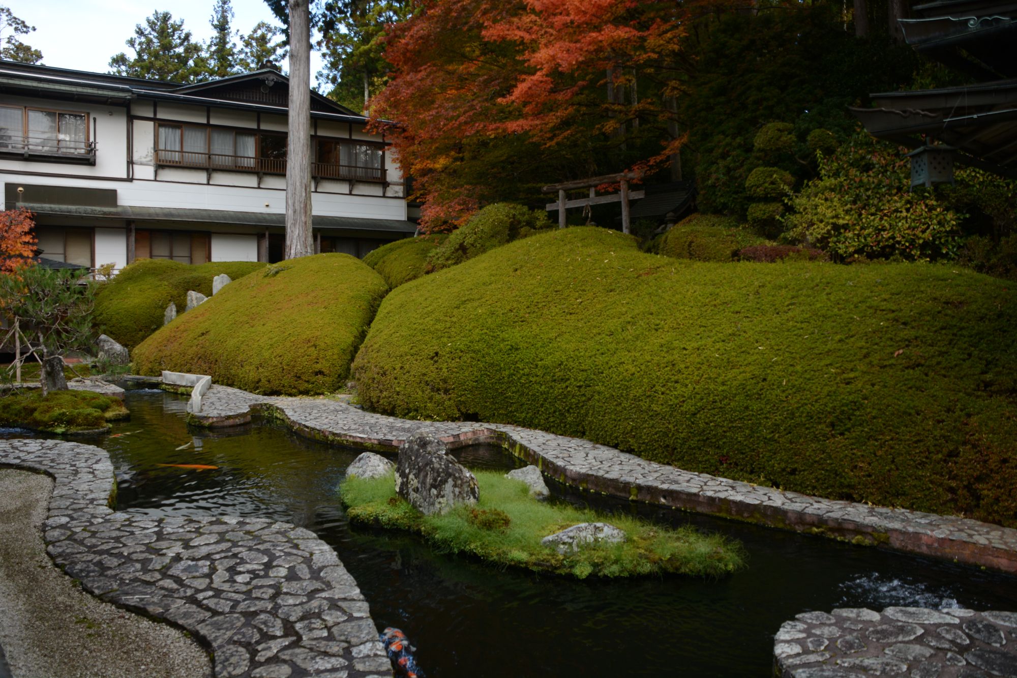 Da wir erst in einer Stunde abfahren können, der Bus kommt aus Osaka, laufen wir noch etwas in Kōya-san umher. Leider ist die Sonne noch nicht über den Berg gekommen. Dafür ist es schön leer im Ort.