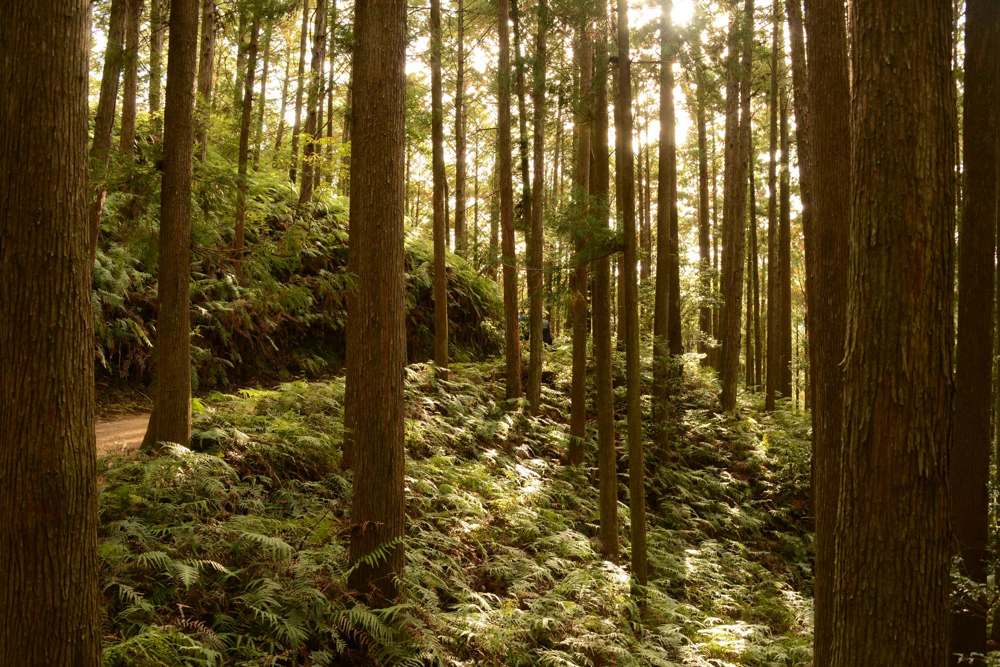 Der Weg ist echt klasse. Er führt in den Wald hinein. Es gibt hohe Kiefern und jede Menge Farne. Toll! Der Untergrund ist nicht schwierig und die Steigungen bzw. Gefälle überschaubar. Bei einer Pause verteilt Keishi wieder verschiedene Bonbons. Lecker - das mag ich. Am Ende erwartet uns ein Shintoschrein -