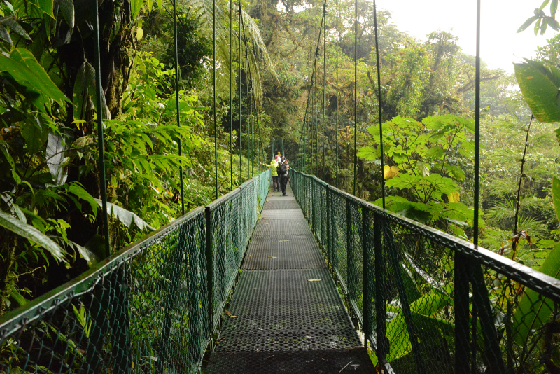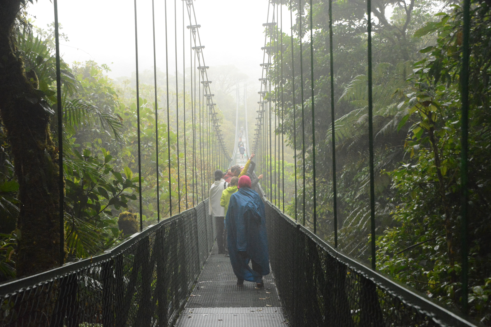 Hotel zurück, sehen vorher bei den Autos einen Nasenbären. Es regnet wieder etwas und es hat sich komplett zugezogen. In Santa Elena brummt der Bär. Jede Menge Jungvolk ist hier, weil man Zip-Lines quer durch den Nebelwald gezogen hat. Die Längste soll 1Km lang sein!