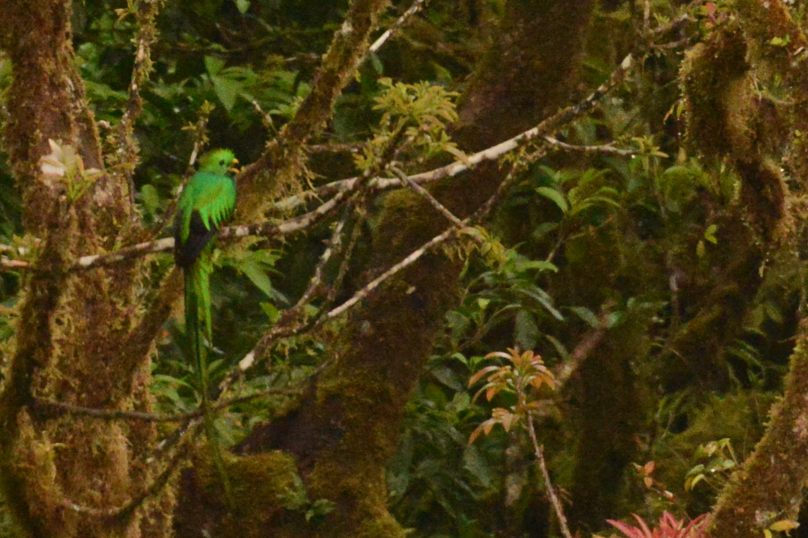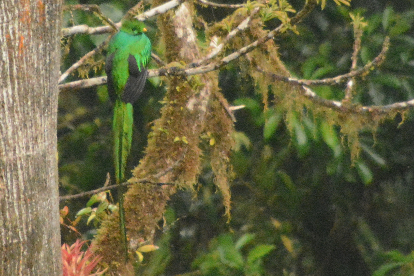 Quetzal (schöner Vogel) sehen wir auch noch. Die sind selten zu sehen. Sie sind zwar weit weg, aber man sieht beim fliegen, dass sie schön bunt schillern. Der Regen hört auf, aber in der Ferne hören wir Donnergrollen. Das hat sich echt gelohnt.