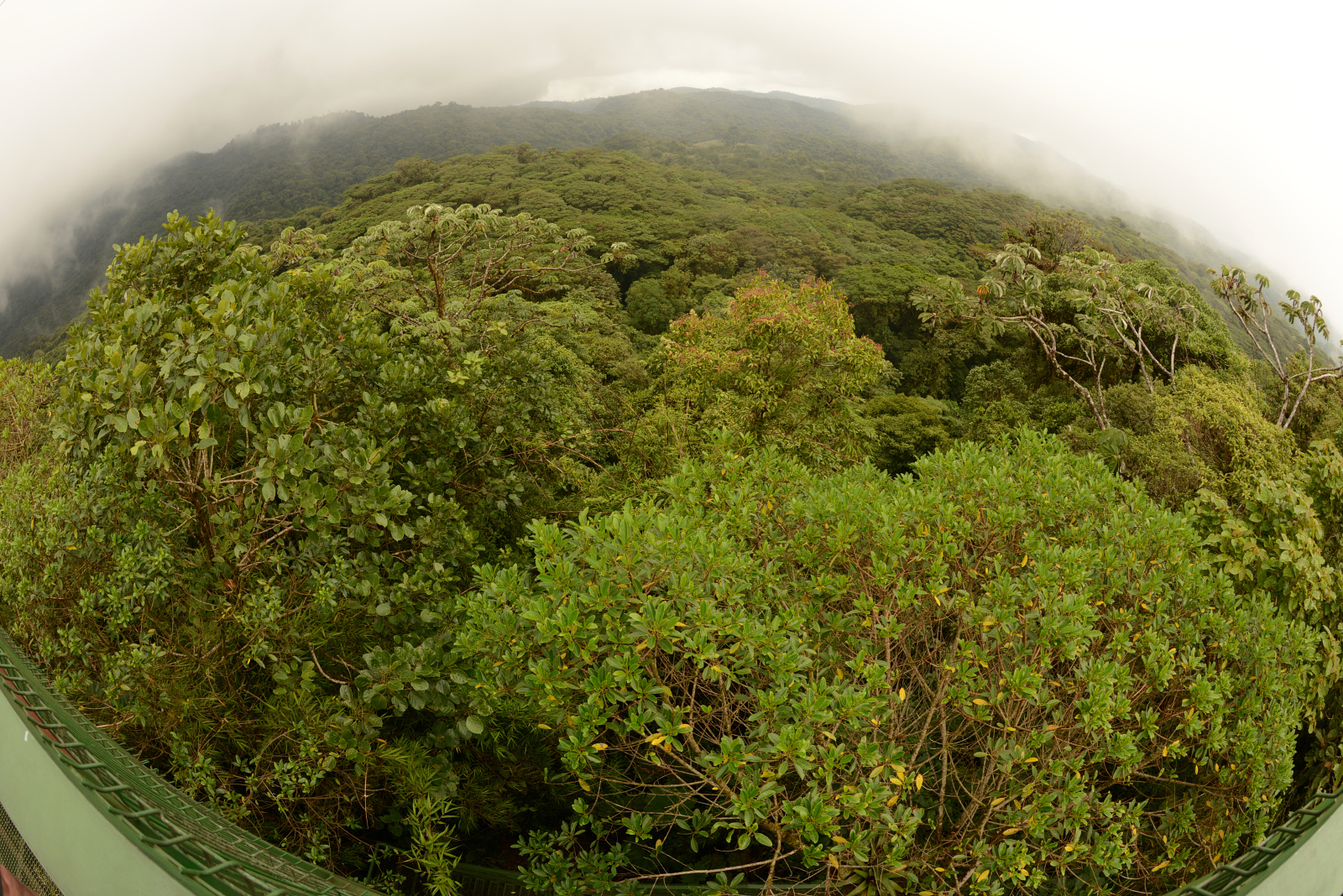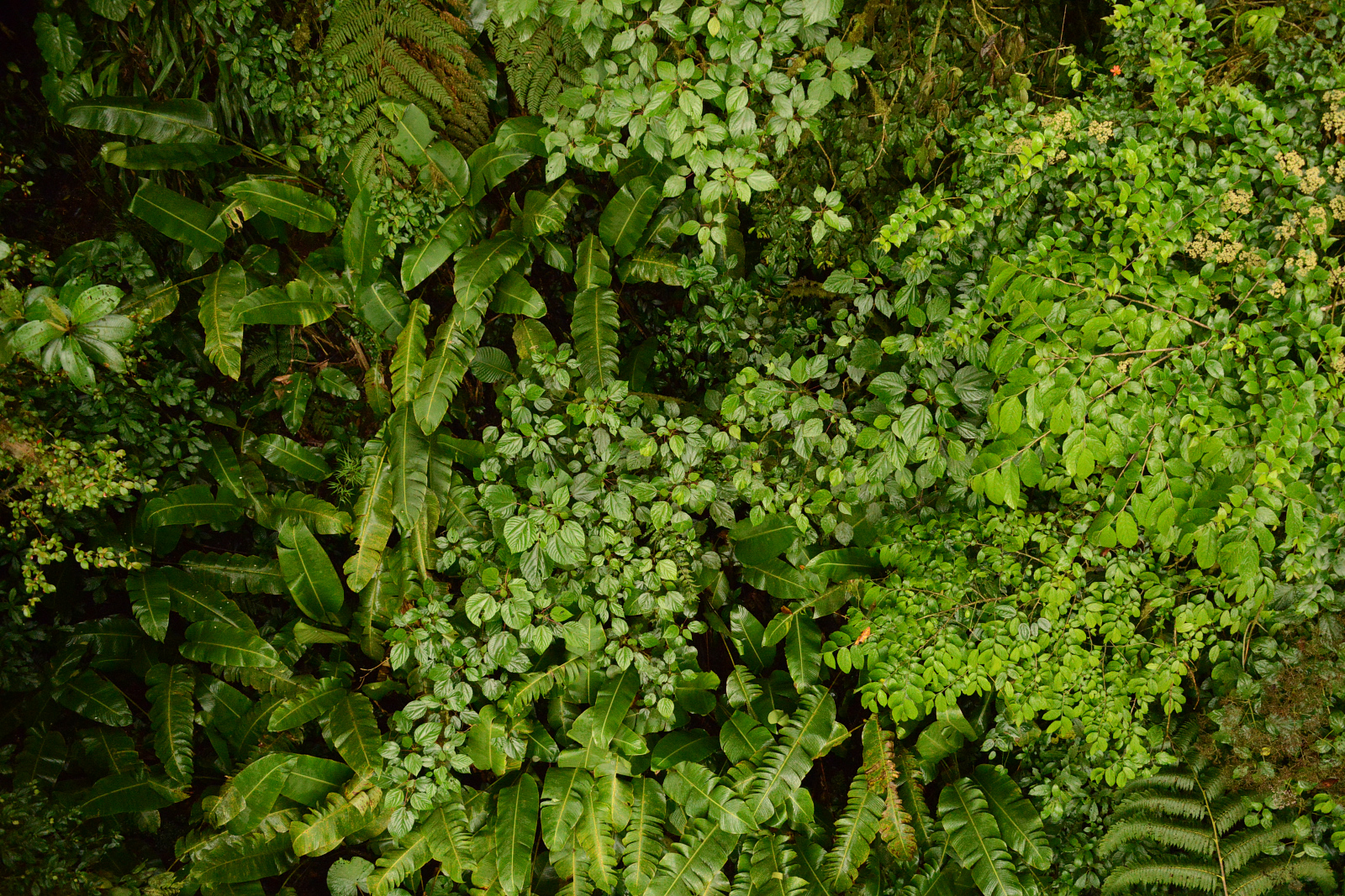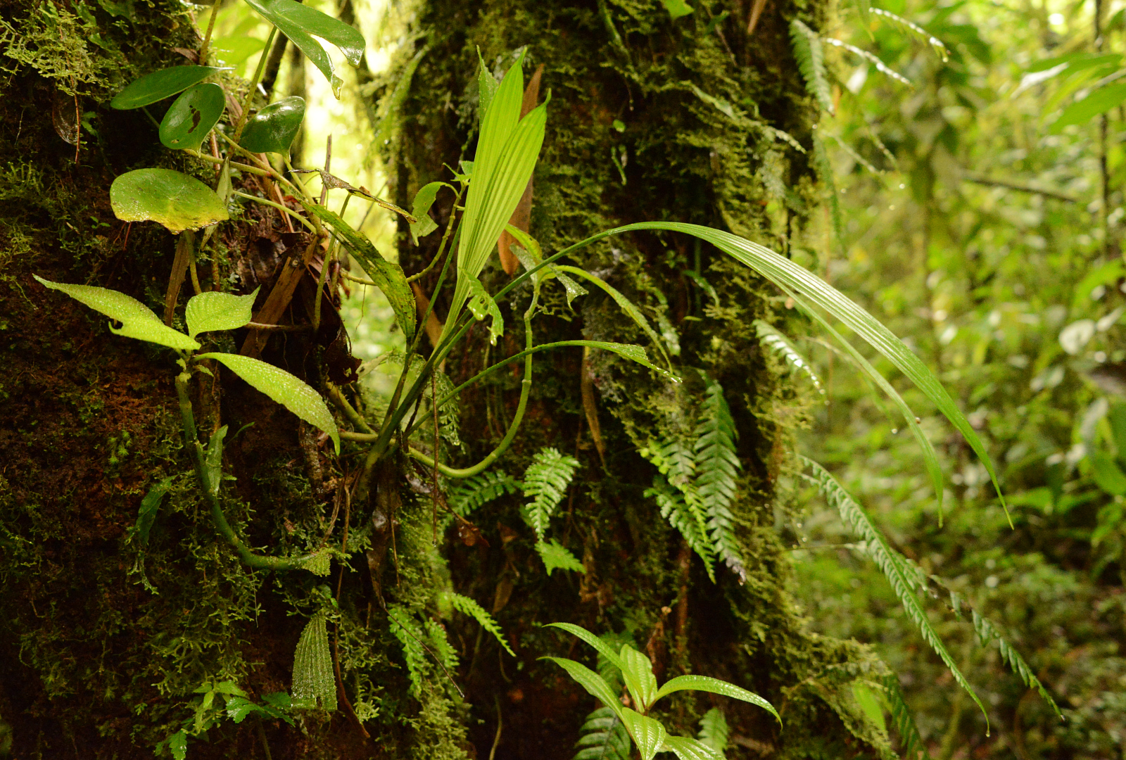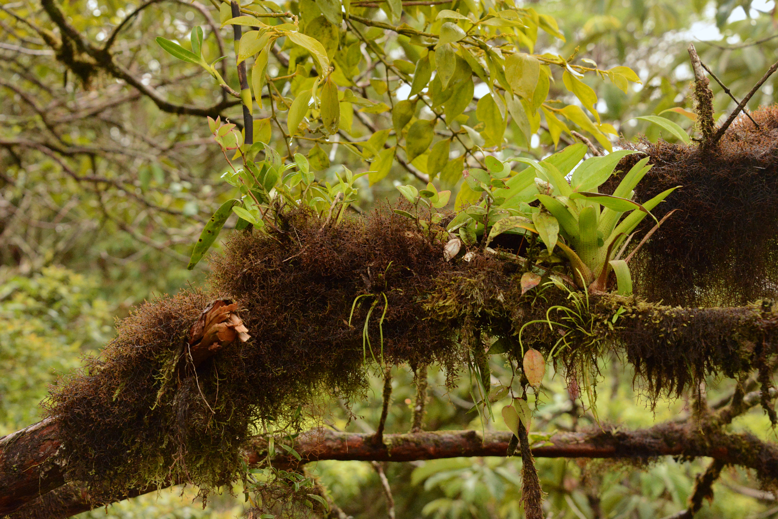 Es erwartet uns ein unvorstellbar schöner Nebelwald. Tolle Bäume, die über und über mit Bromelien, Farnen und weiss der Teufel was bewachsen sind. Wir wissen gar nicht wo wir zuerst hinsehen sollen. Leider ist es stockdunkel. Die Kamera ist auf die höchste Empfindlichkeit gestellt und trotzdem verwackeln wir viele Bilder. Der Wald ist undurchdringlich und nur über die angelegten Pfade zu laufen. An einer Kreuzug sieht jemand eine