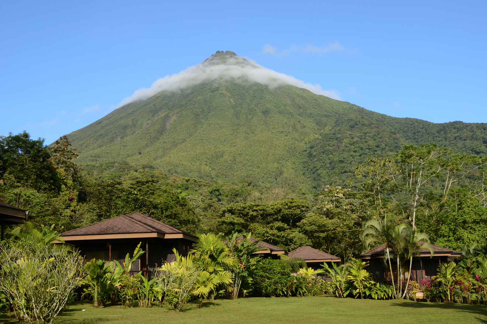 Morgens ist es sonnig, der Himmel blau und das Klima feucht. Bevor wir zum Frühstück gehen schlendern wir ein wenig mit dem Fotoapparat durch die schöne Anlage. Beim Frühstück können wir auf den Arenalvulkan schauen der noch durch Wolken verhüllt ist. Nach und nach verschwinden sie. Das ist ein Schauspiel – wahnsinn. Zum Schluss sieht es so aus als hätte er ein Sahnehäubchen.