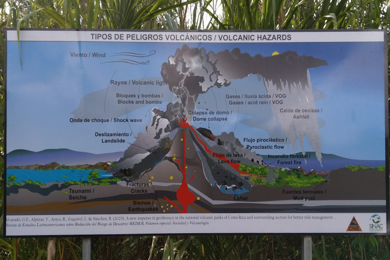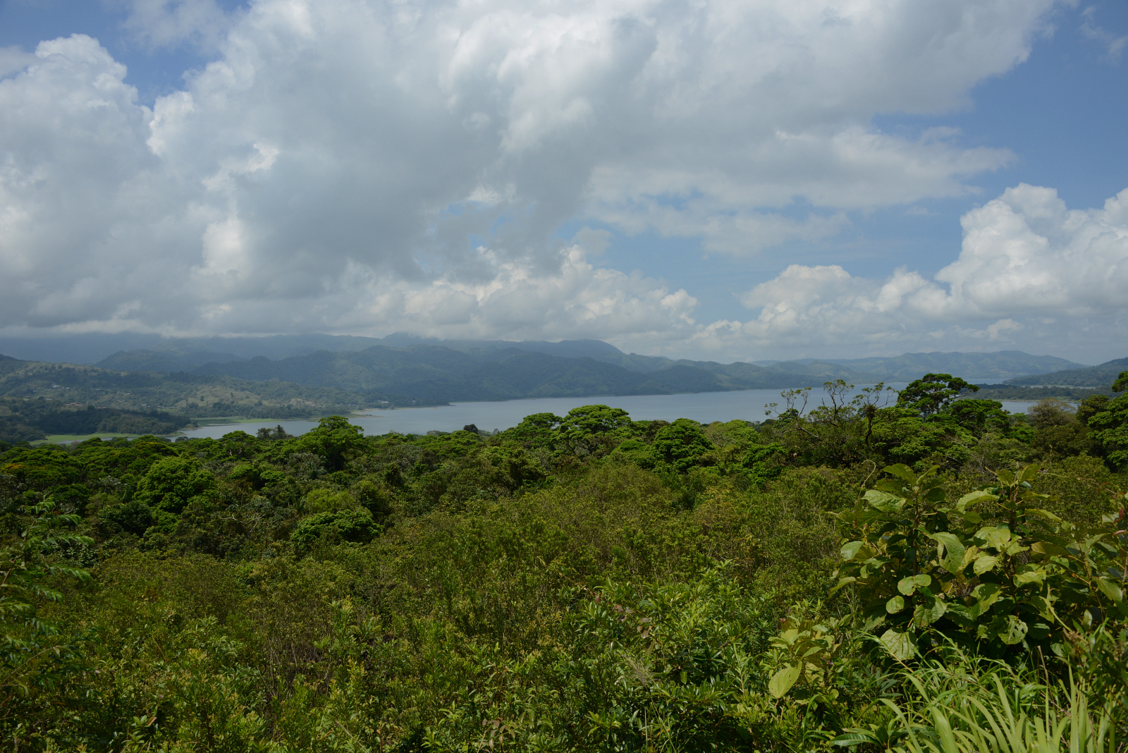 Irgendwann verlassen wir den Wald an einer Stelle an der der letzte Vulkanausbruch 1992 eine Schneise in den Wald geschlagen hat. Über dieses Lavafeld laufen wir bis zu einem Aussichtspunkt an dem man auf den Arenalsee und den Vulkan schauen kann.