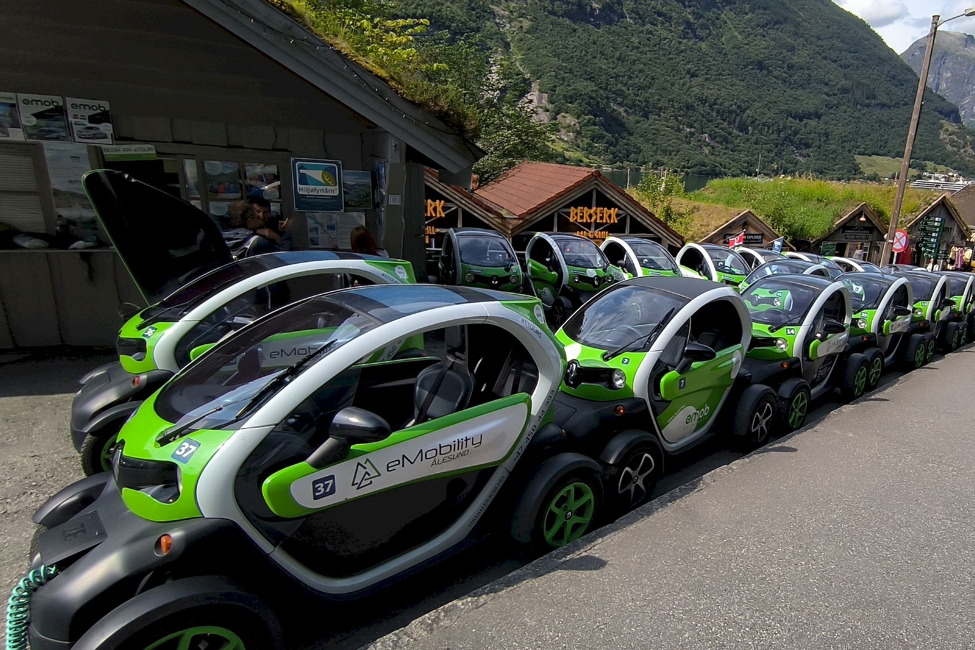 Wir fahren weiter nach Geiranger runter. Die Ansammlung von Häusern ist alles andere als sehenswert. Ausser Souvenirläden, Cafés, Restaurants und Hotels gibt es nur noch Boots- und Schifffahrten zu buchen. Man kann sich natürlich auch E-Bikes mieten oder Twizzies. Wir gönnen uns einen Café nachdem wir die Fähre nach Hellesylt für 13:20 gebucht haben.