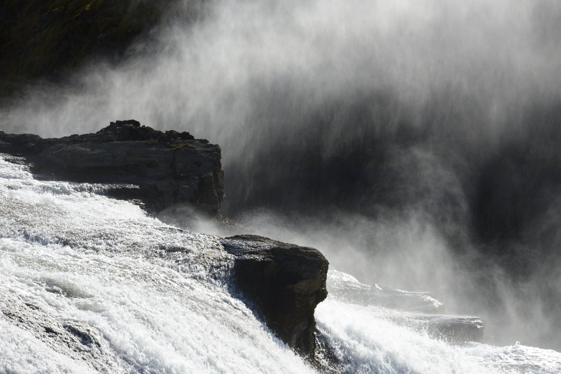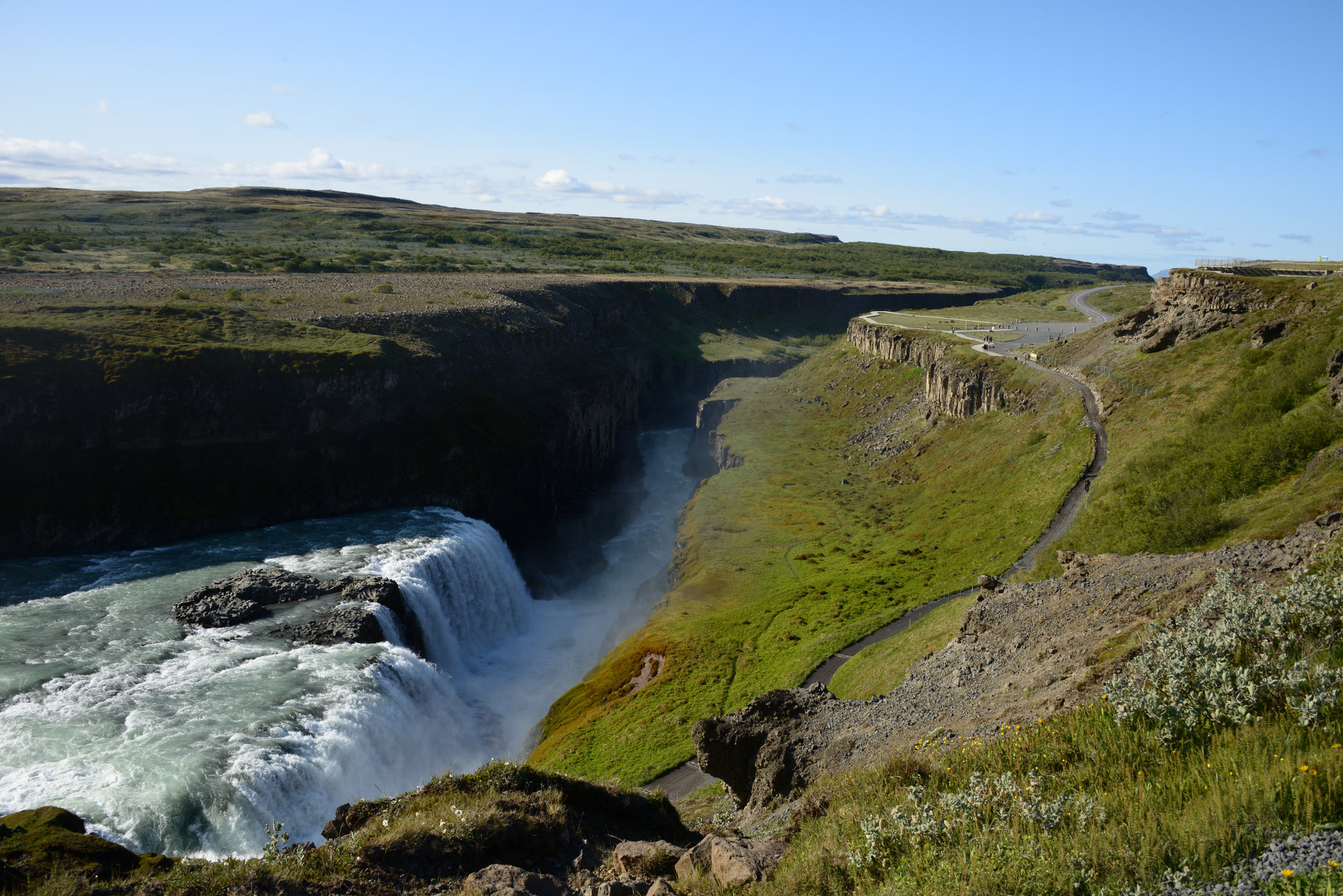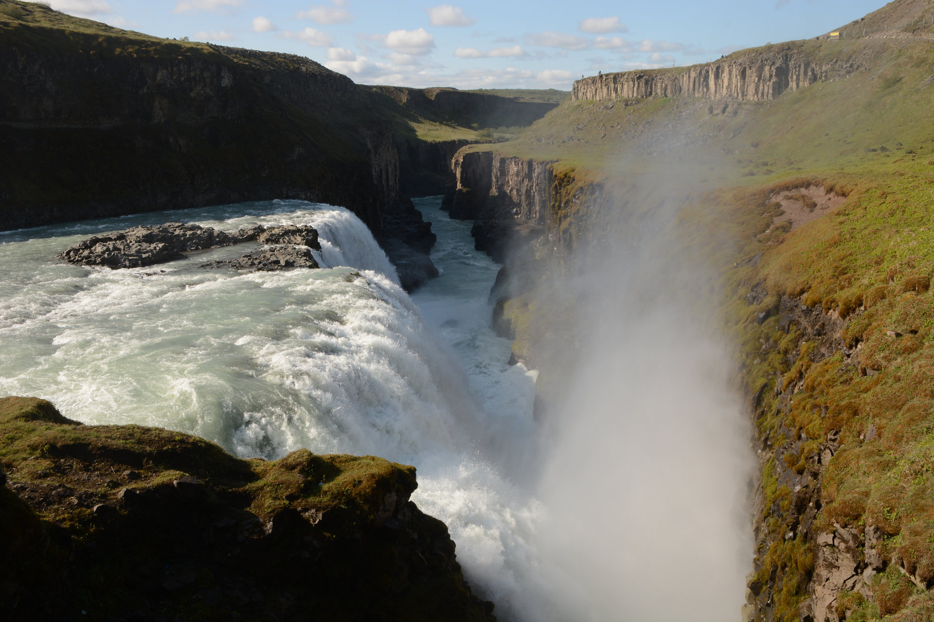 Gullfoss empfängt uns donnernd im Sonnenschein - klasse.