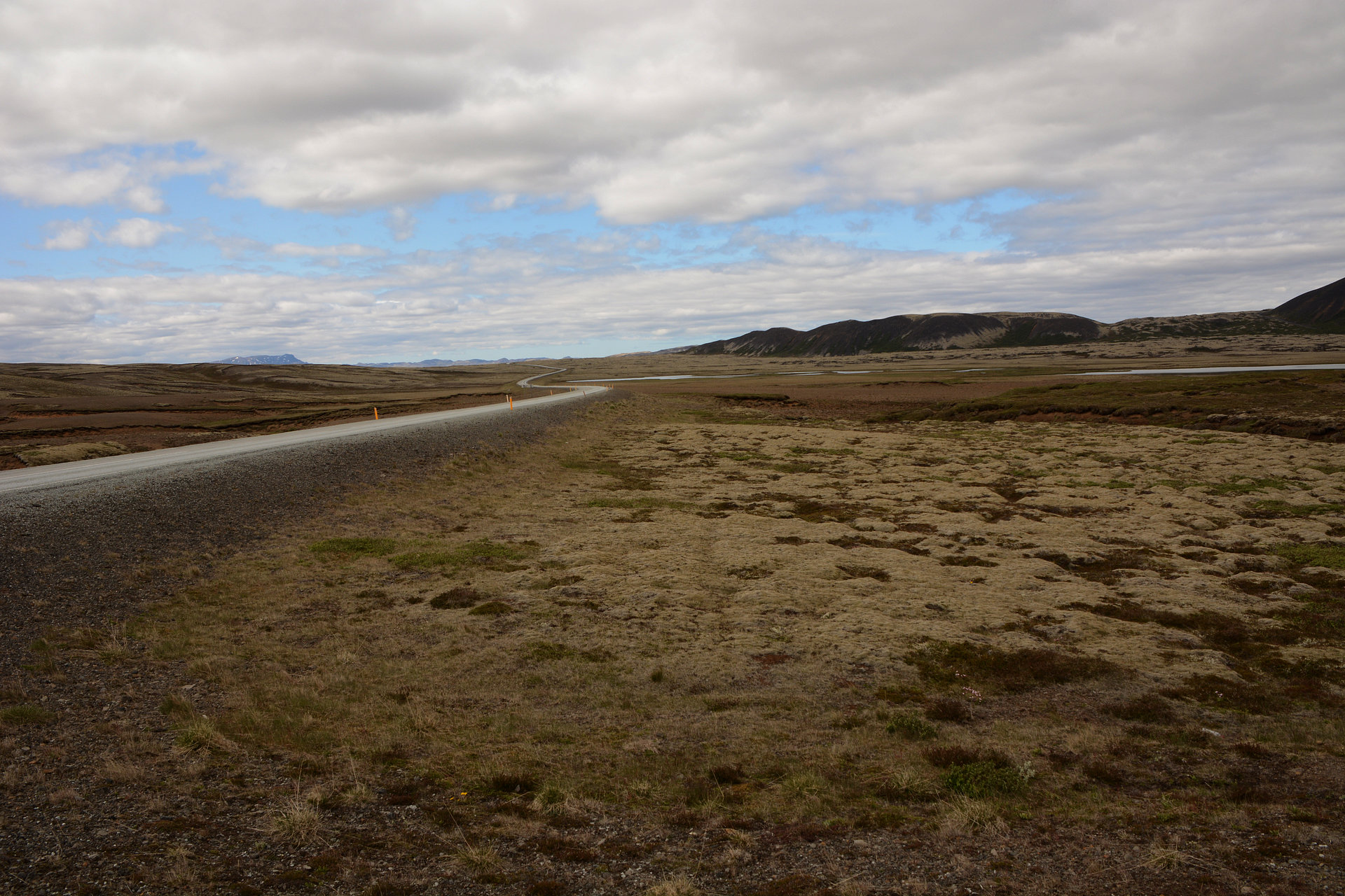 Þingvellir. Auf dem Weg dahin kommen uns Bus an Bus entgegen. Pfingstsonntag und Sonne!