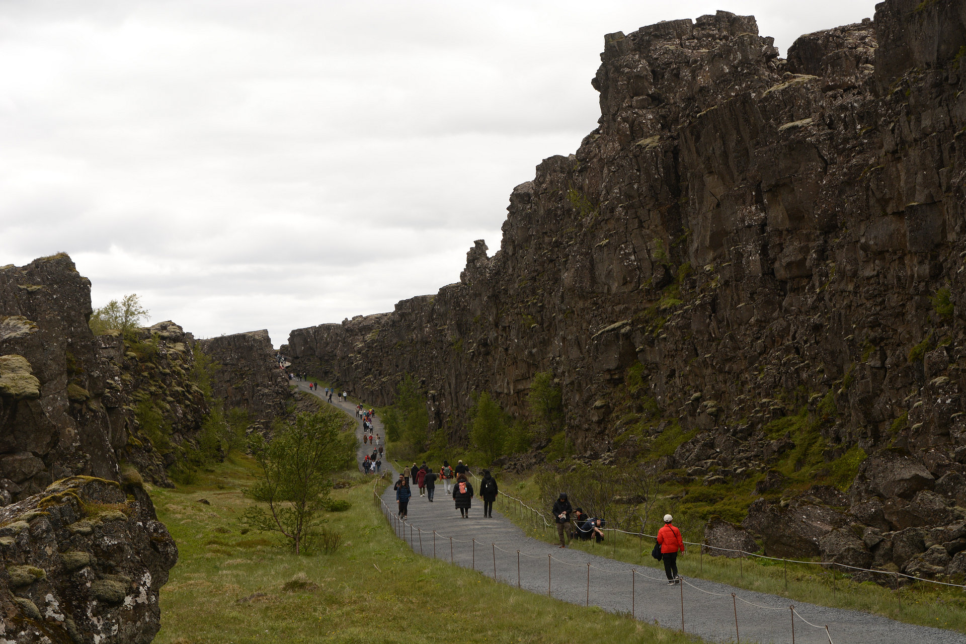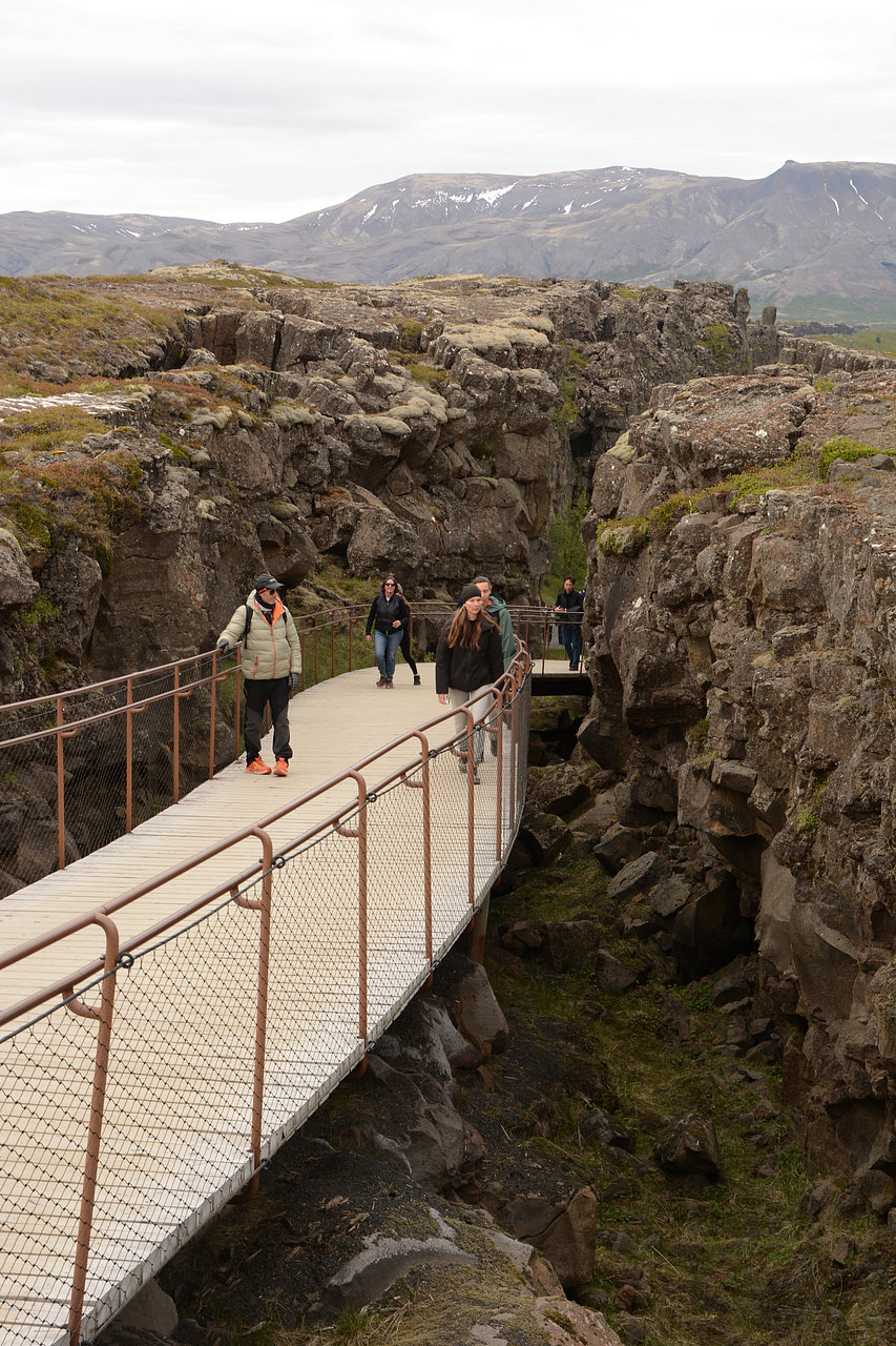 Wir laufen durch die bekannte und beeindruckende Schlucht zu verschiedenen Aussichtsplattformen. Für die Isländer ist diese Schlucht von besonderer Bedeutung. Einmal im Jahr wurde hier eine große Versammlung abgehalten und zum Beispiel Gesetze beschlossen. Weiterhin driften hier die amerikanische und die eurasische tektonischen Platten auseinander.