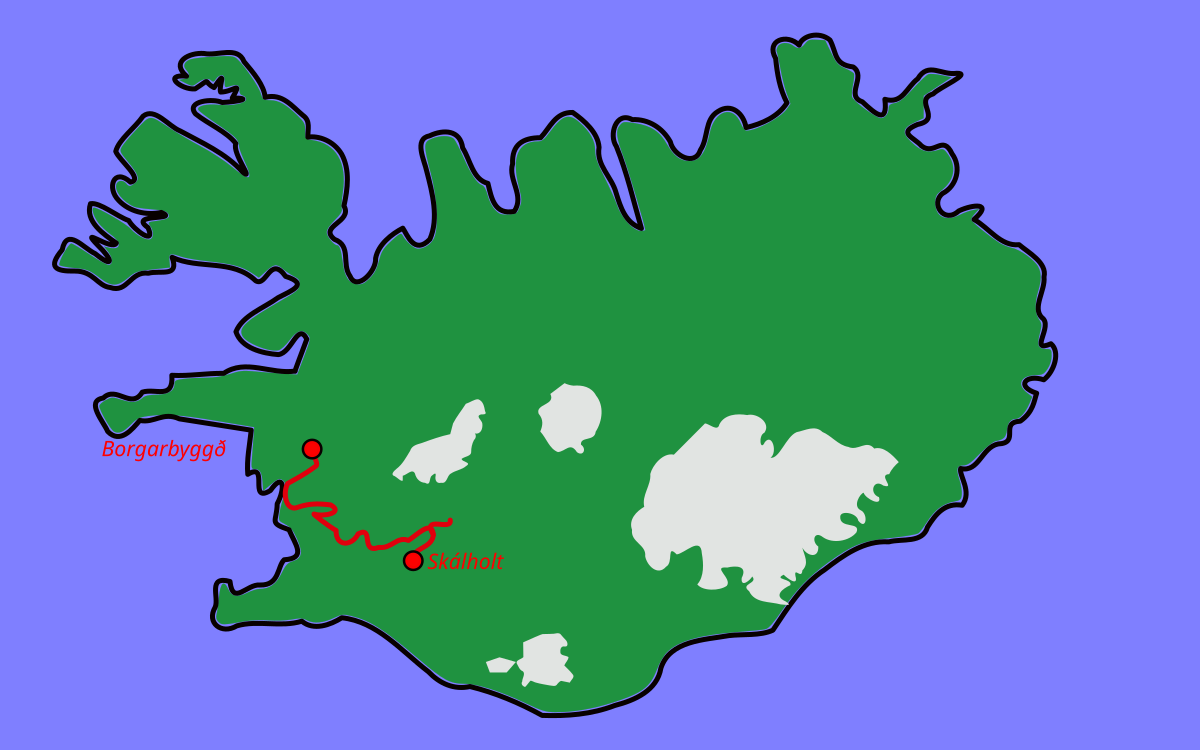 Hvítá Inn an. Eine Mail der Besitzer informiert uns über den Zugangscode. Innen sehen wir erstmal eine Baustelle und Baulärm kommt vom oberen Stockwerk. Pfingstsonntag - da hat man Zeit zum erweitern. Das Zimmer hat eine sehr schöne Aussicht, ist relativ schmal (zwischen Bett und Wand sind 15cm Durchgang) und ohne die Lärmbelästigung wäre es echt toll.