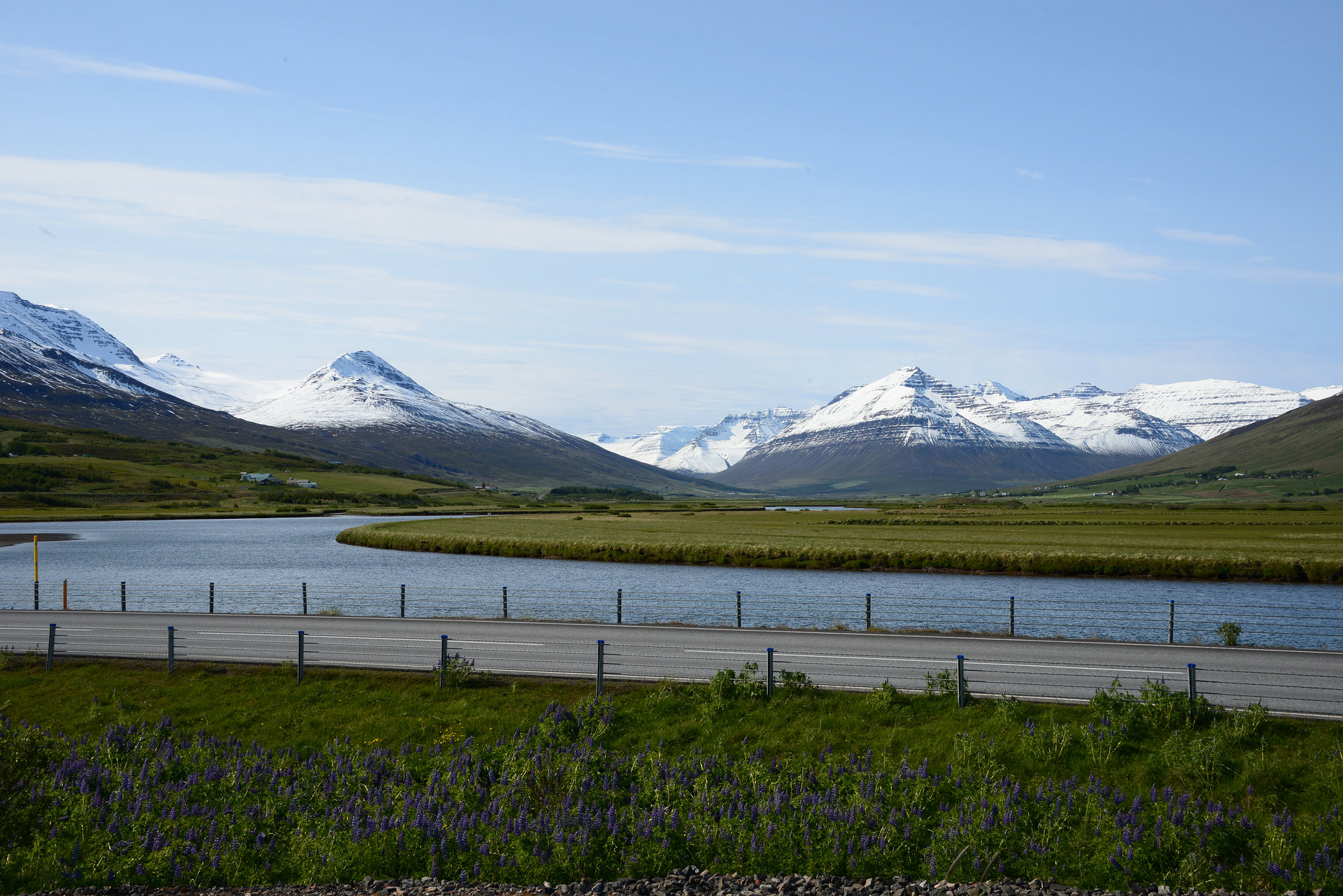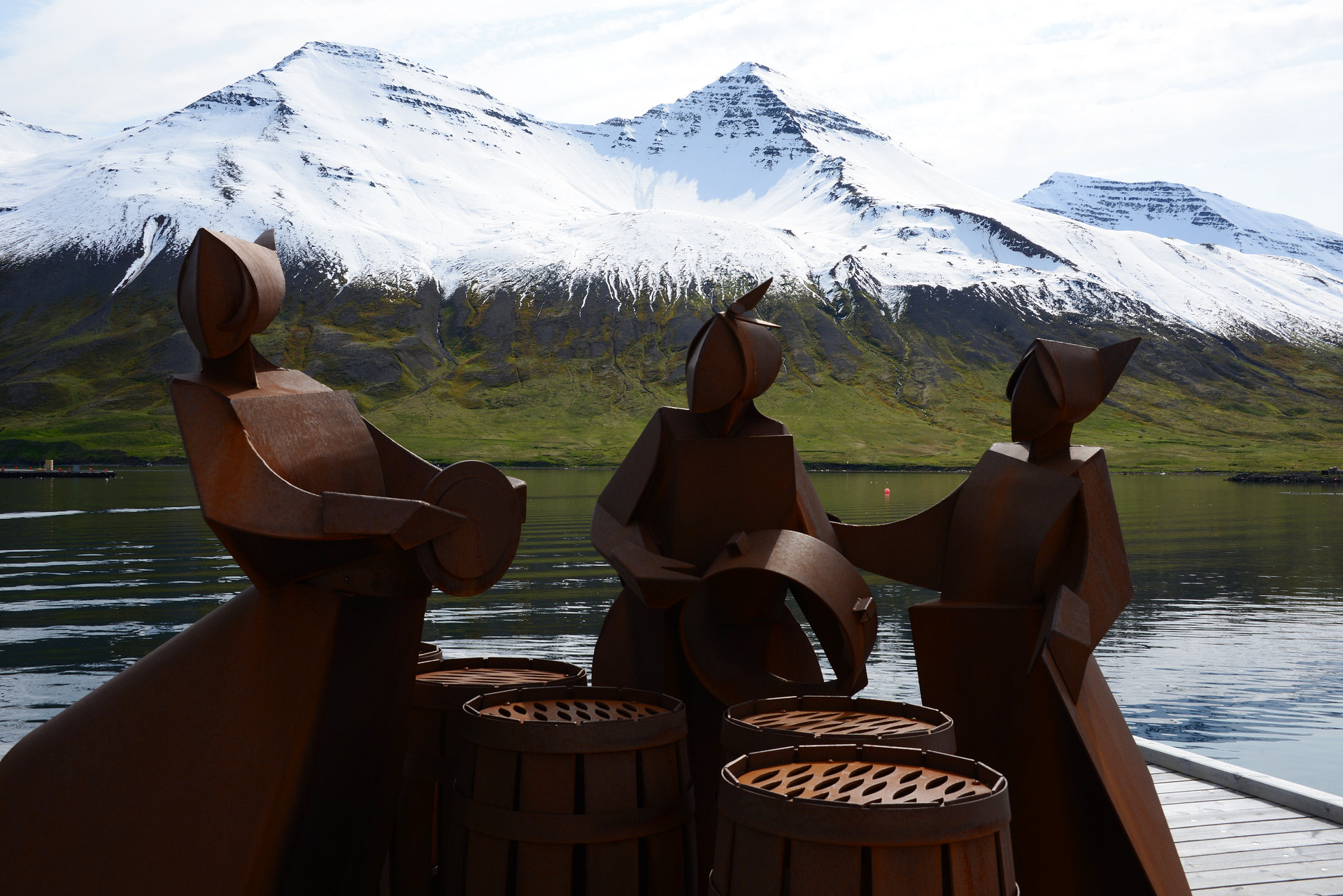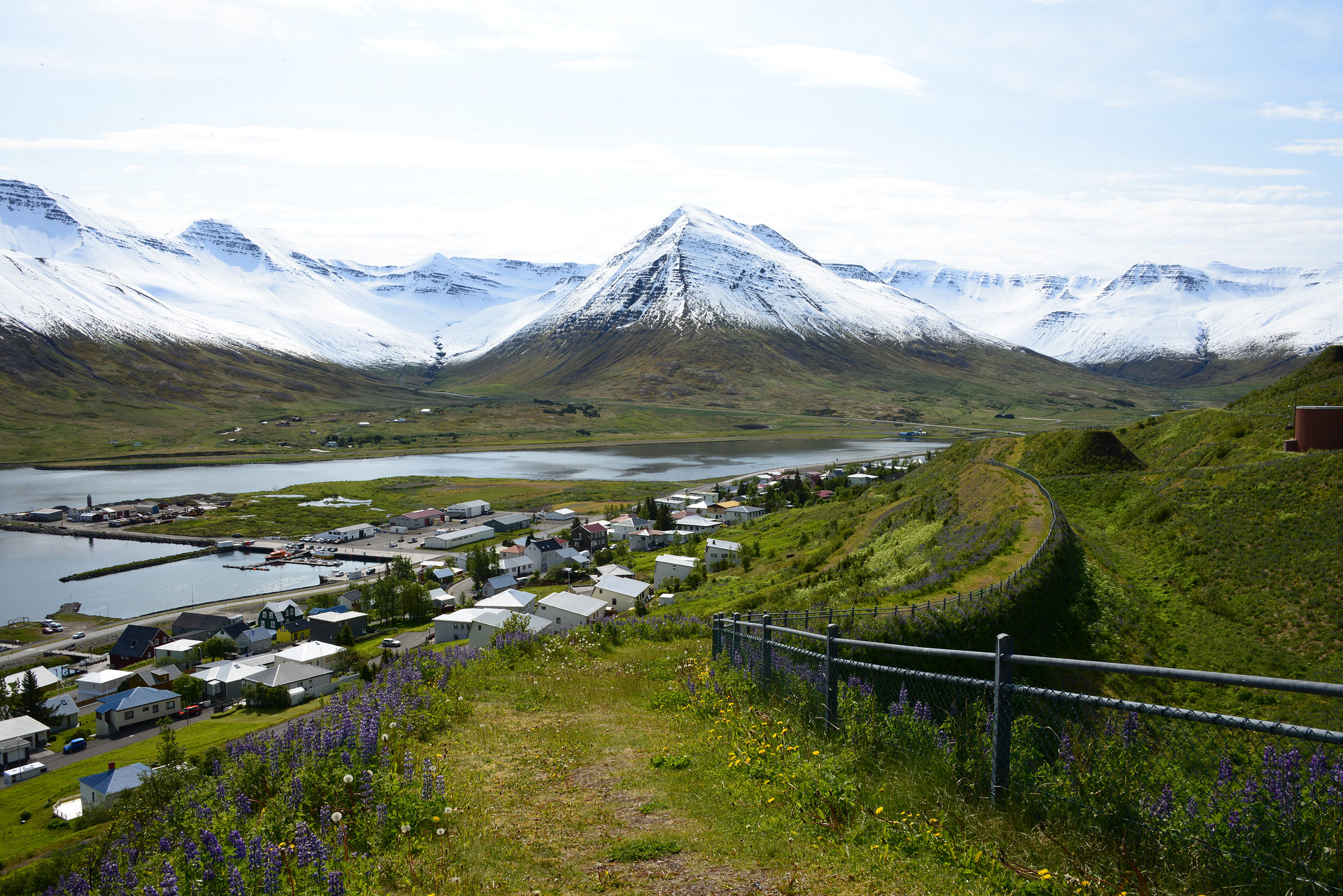 Siglufjörður. Die Dörfer an sich sind nicht besonders erwähnenswert, aber die Natur in der sie liegen, ist atemberaubend. Die Strasse führt auf der Ostseite des