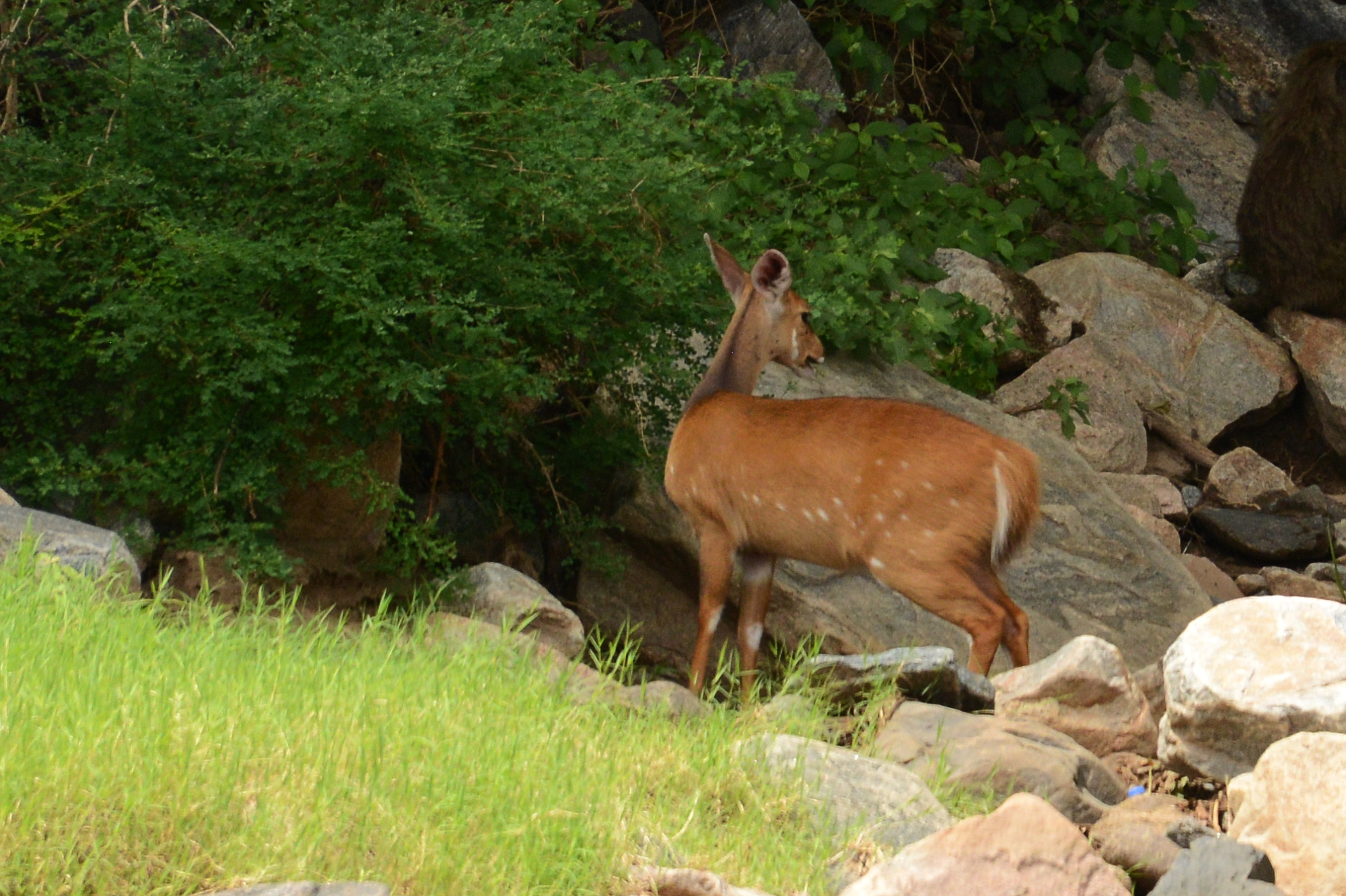 Ausser Impalas gab es diesen Bushbock - leider weit weg und der einzige der Reise.